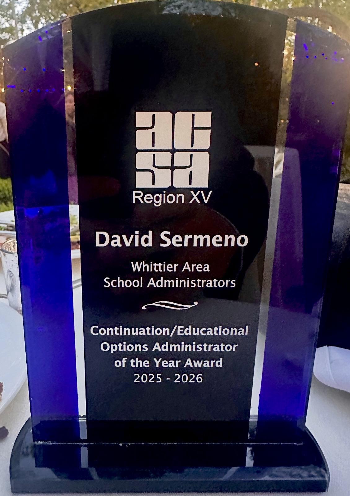 Celebrating Principal David Sermeno: ACSA Region XV Administrator of the Year